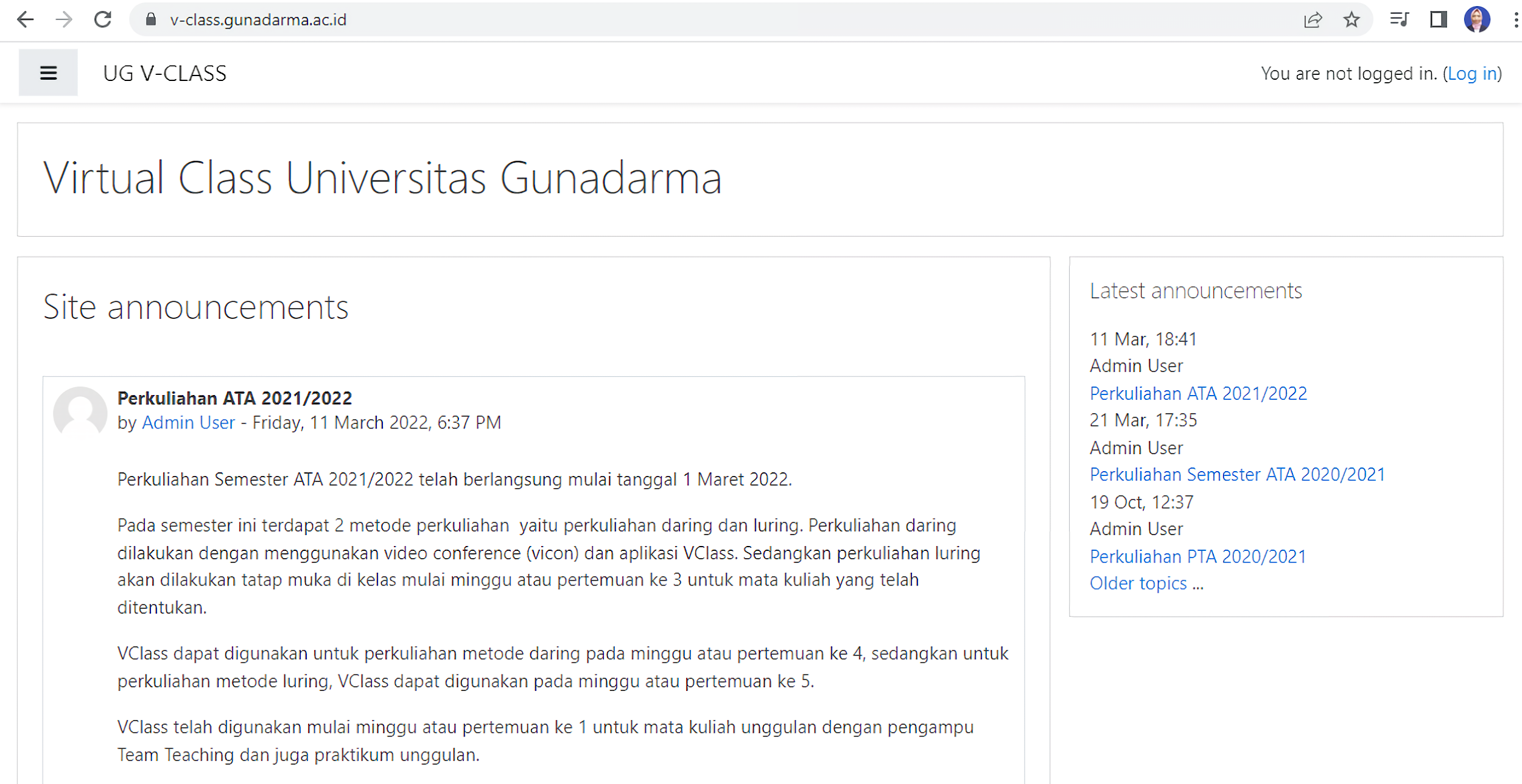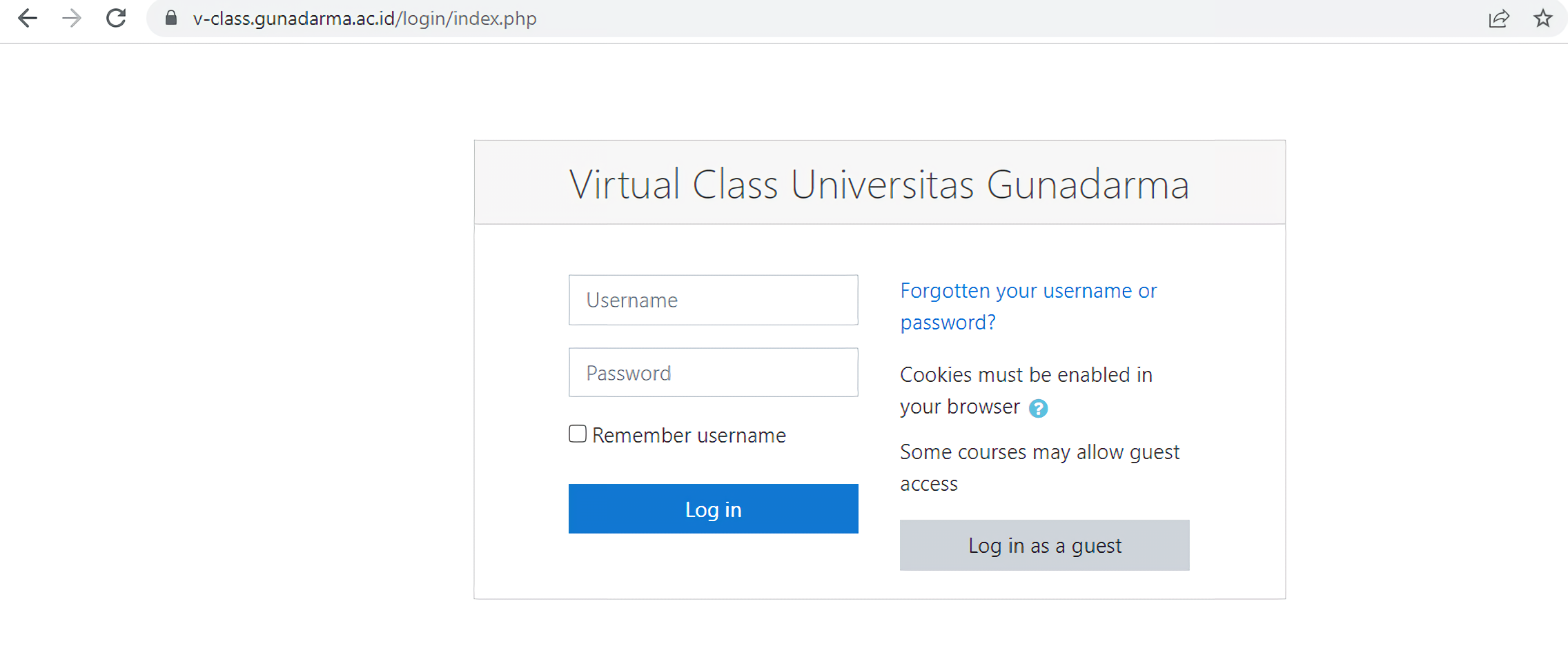 1. Login V-Class Gunadarma