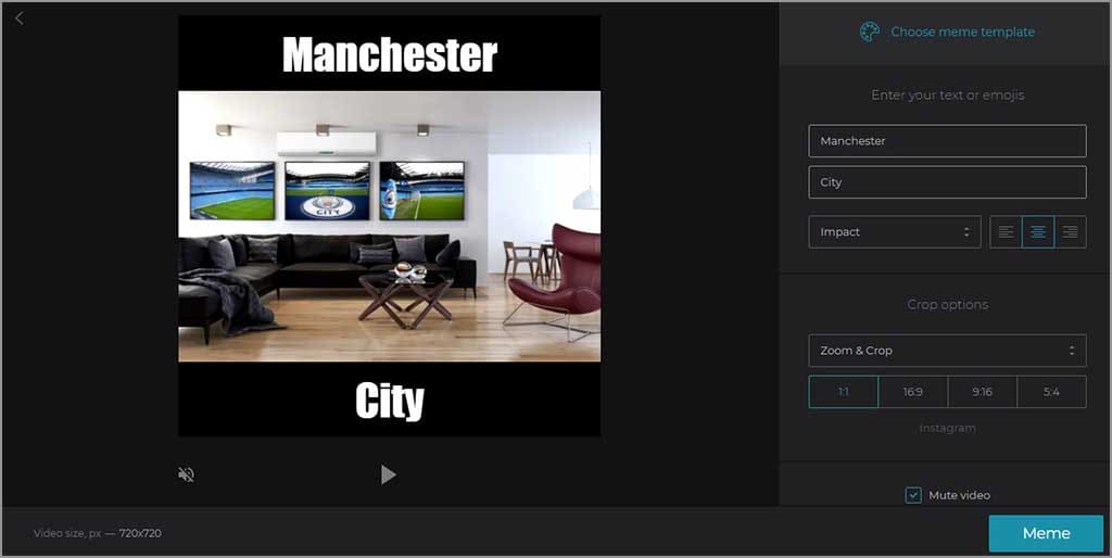 Berikut ini salah satu contoh fitur yang ada di Clideo, yaitu fitur meme: