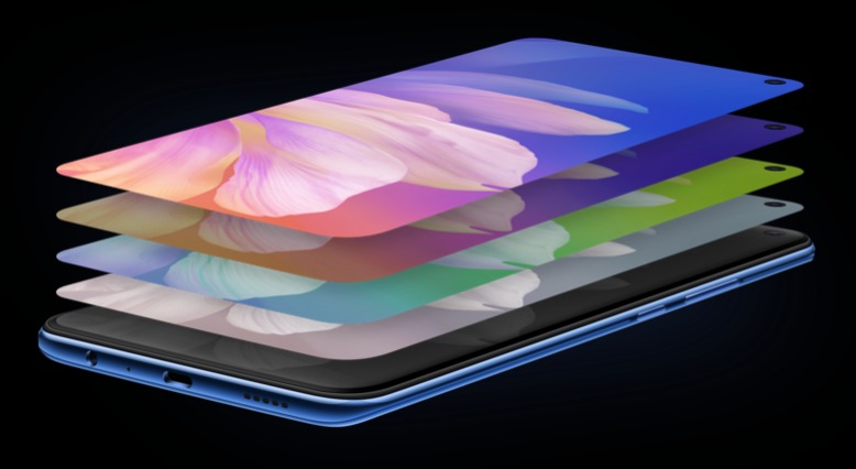 Layarnya juga dilengkapi dengan in-display fingerprint scanner untuk keamanan dan memiliki punch-hole dibagian kanan atas yang mengakomodasi kamera depan.