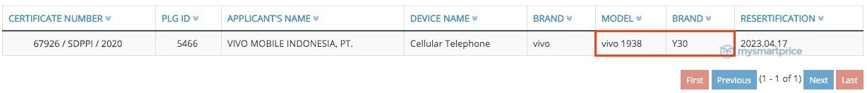 Menurut sertifikasi yang di-dapat, smartphone tersebut nantinya akan dikenal dengan nama Vivo Y30.