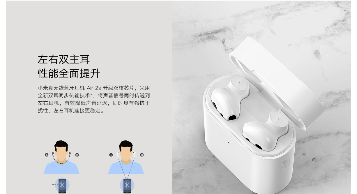 Mi Air 2S memiliki touch sensitive surface yang dapat digunakan untuk berbagai macam fungsi seperti menjawab panggilan dan mengendalikan volume.