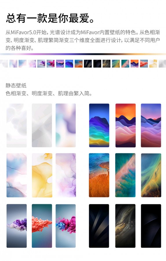 MiFavor 10 memiliki opsi pilihan Dynamic Wallpaper dengan tambahan 6 tema built-in yang masing-masing memiliki desain tersendiri dengan ikon yang berbeda.