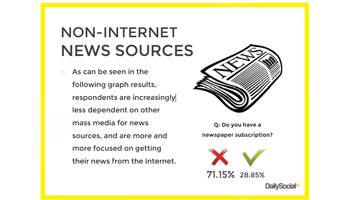Survei “Indonesia Online News Reading Habits” sendiri melibatkan 1.012 responden yang diambil secara acak dari populasi pengguna smartphone se-Indonesia.