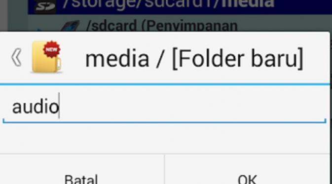 Silahkan buka File Manager, lalu pilih SDcard atau memori eksternal, dan buatlah satu folder baru dengan nama Media.