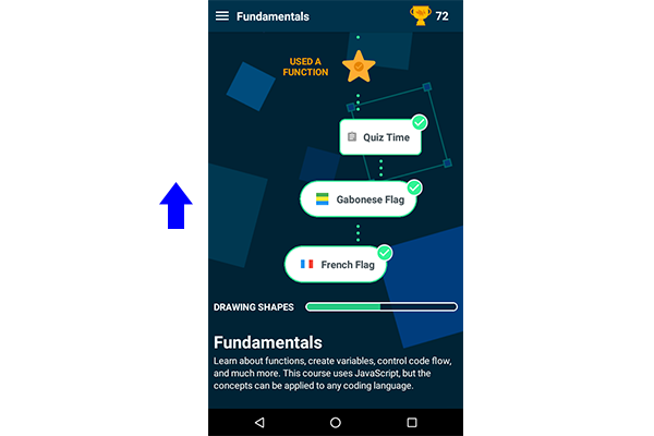 5. Setelah berhasil menjawab 4 pertanyaan yang diberikan. Anda akan mulai belajar pengkodean menggunakan JavaScript dengan membuat gambar bendera Perancis dan Gabon.