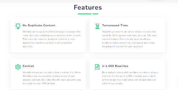 Word AI adalah salah satu alat penulisan ulang paling efektif yang secara akurat memahami maksud konten dan menyajikannya dalam kata-kata yang unik.