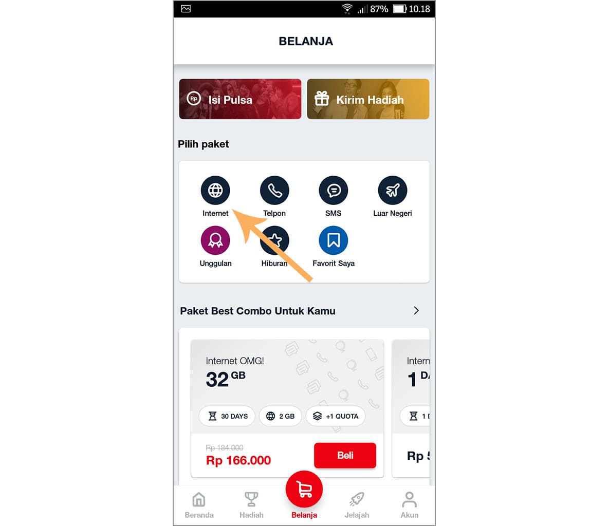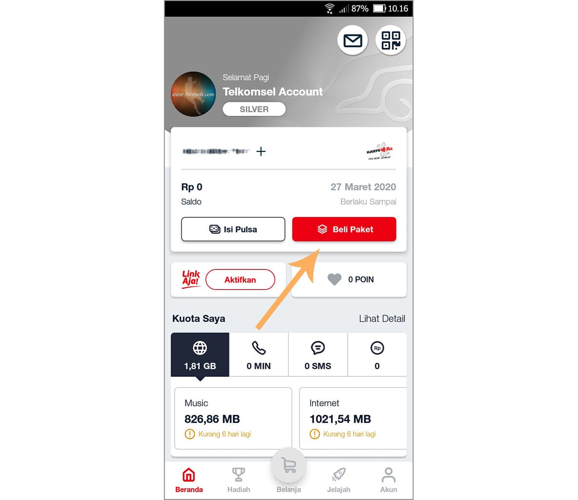 2. Jika sudah, buka aplikasinya dan silakan ketuk beli paket.
