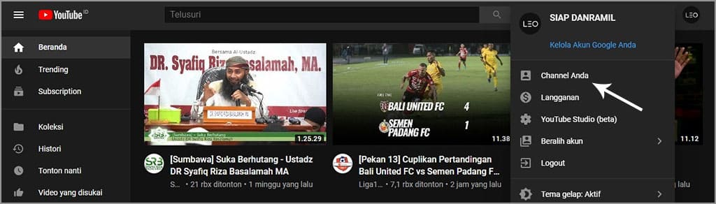 2. Klik foto profil yang terletak di pojok kanan atas, kemudian pilih channel Anda.