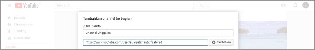 Jumlah channel yang bisa kita unggulkan cukup banyak, yaitu lebih dari 20. Fitur yang satu ini bisa Anda gunakan untuk mempromosikan saluran Anda yang lain apabila Anda memiliki saluran lebih dari satu. Bukan hanya itu saja, Anda juga bisa mempromosikan saluran teman atau saudara Anda yang saat ini jumlah subscriber dan viewer-nya masih sedikit.