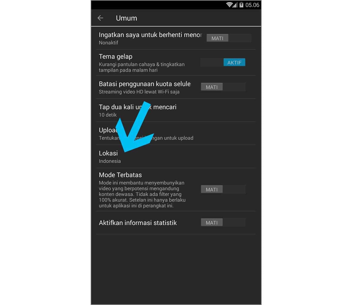 5. Pilih lokasi. Misal, Anda mengubah lokasi dari Indonesia ke Malaysia.