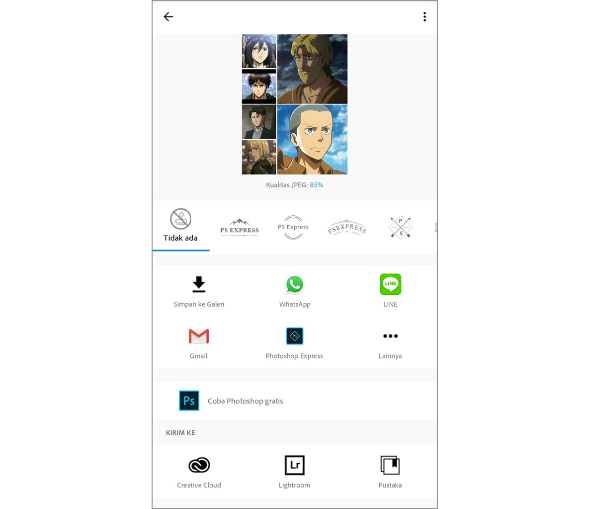 7. Ketika desain sudah dipilih, silakan ketuk ikon share untuk mengunduh hasilnya.