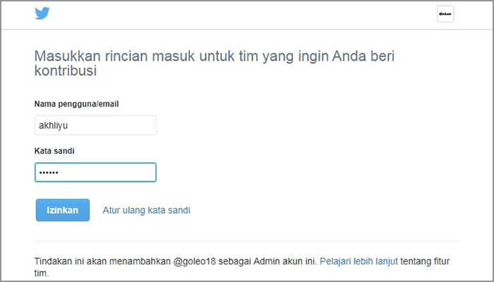 2. Silakan masuk menggunakan salah satu akun Twitter Anda.