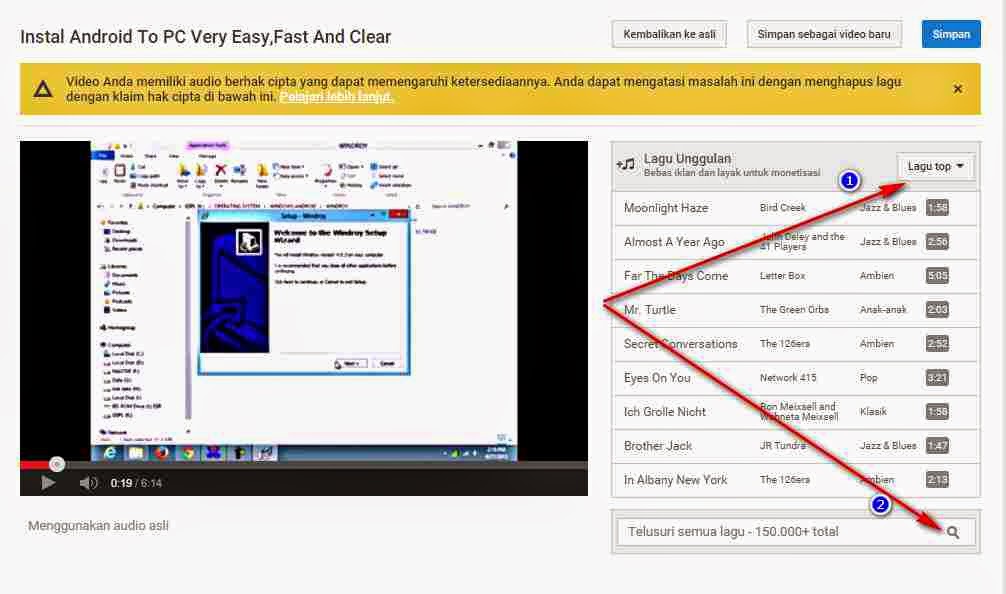 Tahukah anda,salah satu penyebab video anda gagal menghasilkan uang dari youtube adalah audio atau lagu yang anda gunakan mempunyai hak cipta atau di lindungi undang undang, mungkin pernah mengalami bahwa video anda tidak bisa di tayangkan di beberapa negara tertentu, hanya gara gara audio atau lagu yang ada dalam video tersebut mempunyai hak cipta alias yang mempunyai hak paten atau ijin resmi, jadi kita tidak boleh menggunakanya sembarangan, apalagi kalau video yang kita upload di kaitkan dengan akun google adsense. Lantas bagaimana kalau video tersebut sudah terlanjur kita upload dan sudah di mempunyai page view atau jumlah tayangan yang banyak? Sayang sekali kan kalau video itu ternyata tidak bisa di monetisasi (di pasang iklan google)