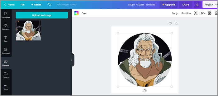 7. Kembali ke uploads, dan seret unggahan ke frames.