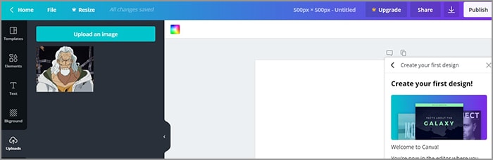 3. Klik create a design pada beranda > custom dimensions.