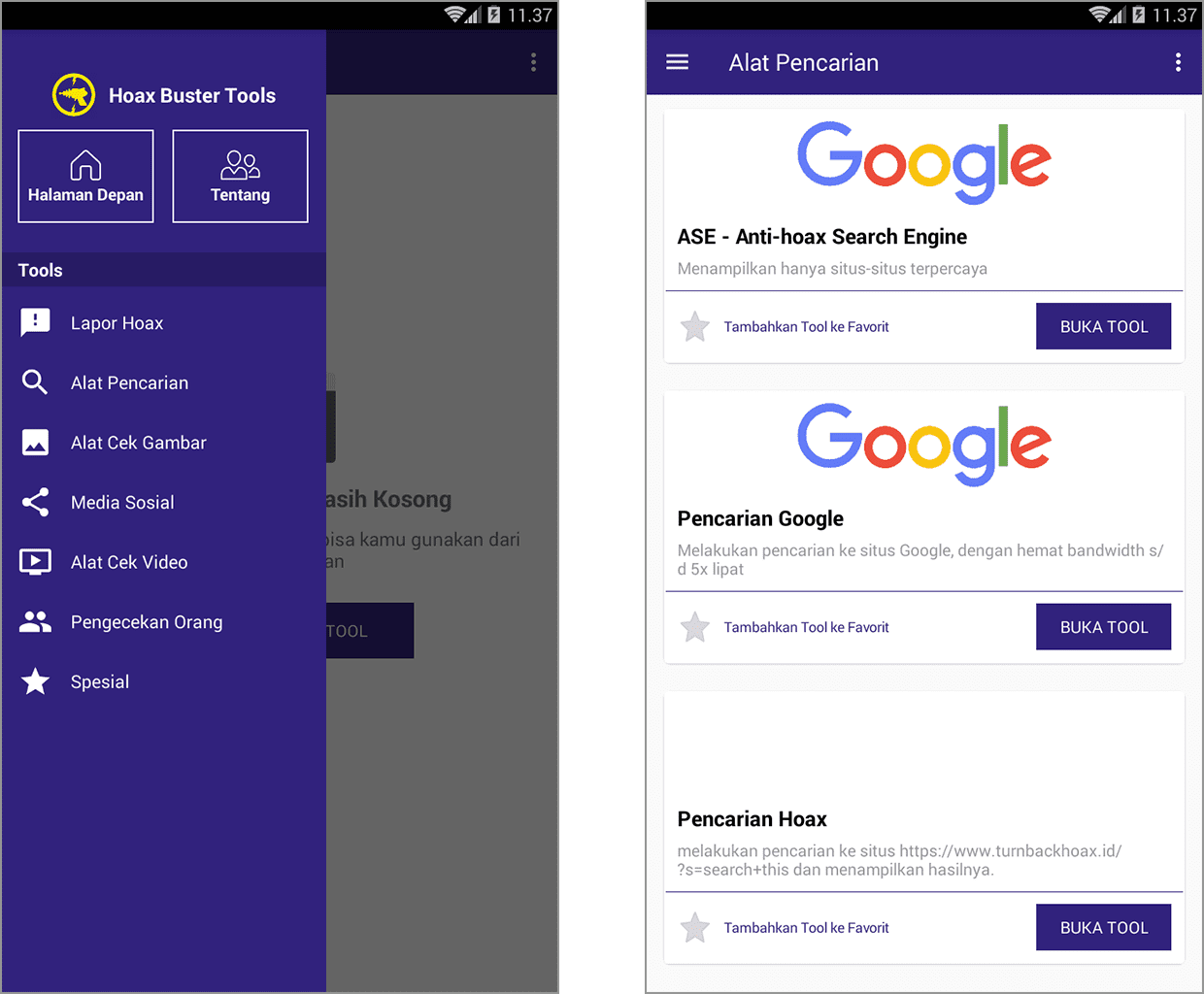 3. Pilih alat pencarian, kemudian pilih pencarian hoax dan ketuk buka tool.