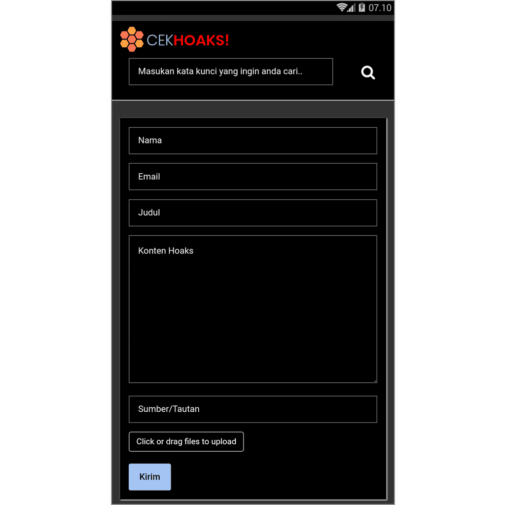 4. Pada pencarian hoax, silakan masukkan kata kunci yang ingin Anda cari berita hoaksnya.
