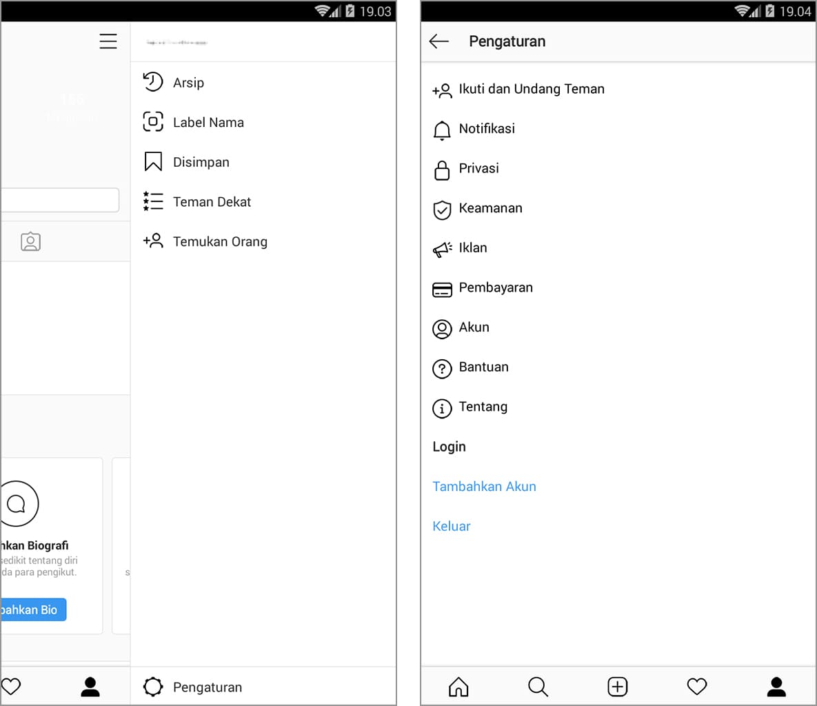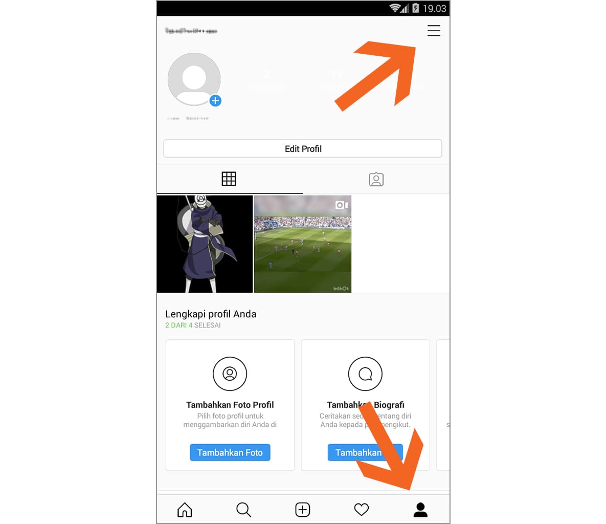 2. Ketuk ikon profil, kemudian ketuk tiga garis horizontal yang terletak di pojok kanan atas.