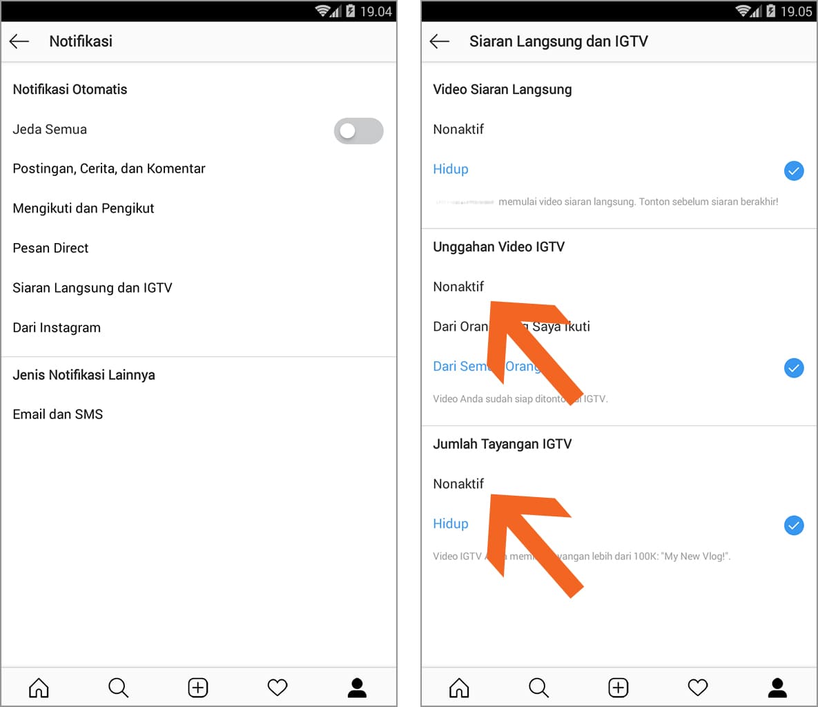 mengatur notifikasi igtv