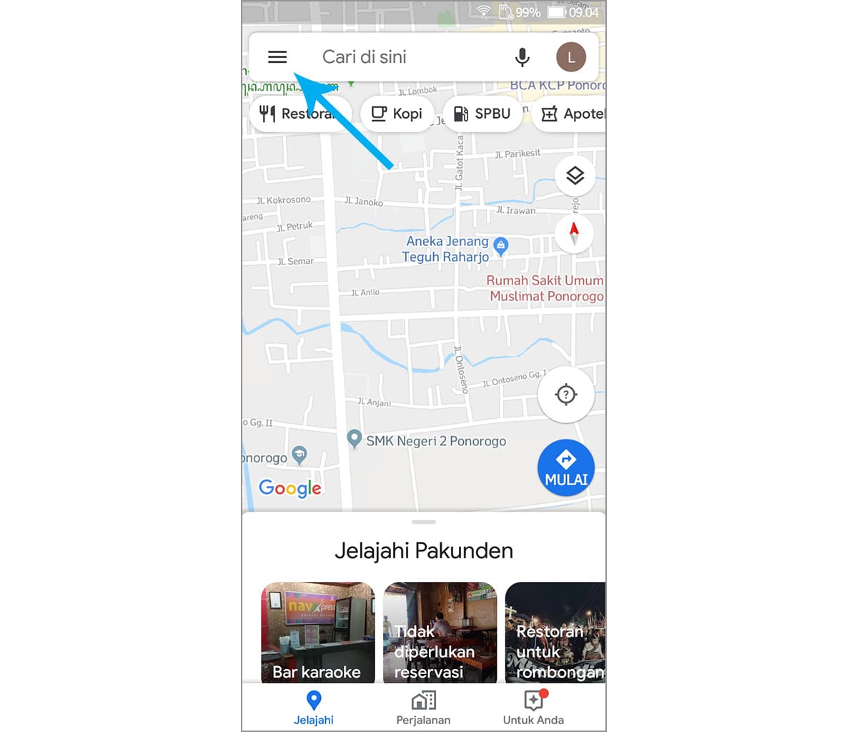 1. Silakan buka aplikasi Google Maps yang terpasang di smartphone Android Anda.