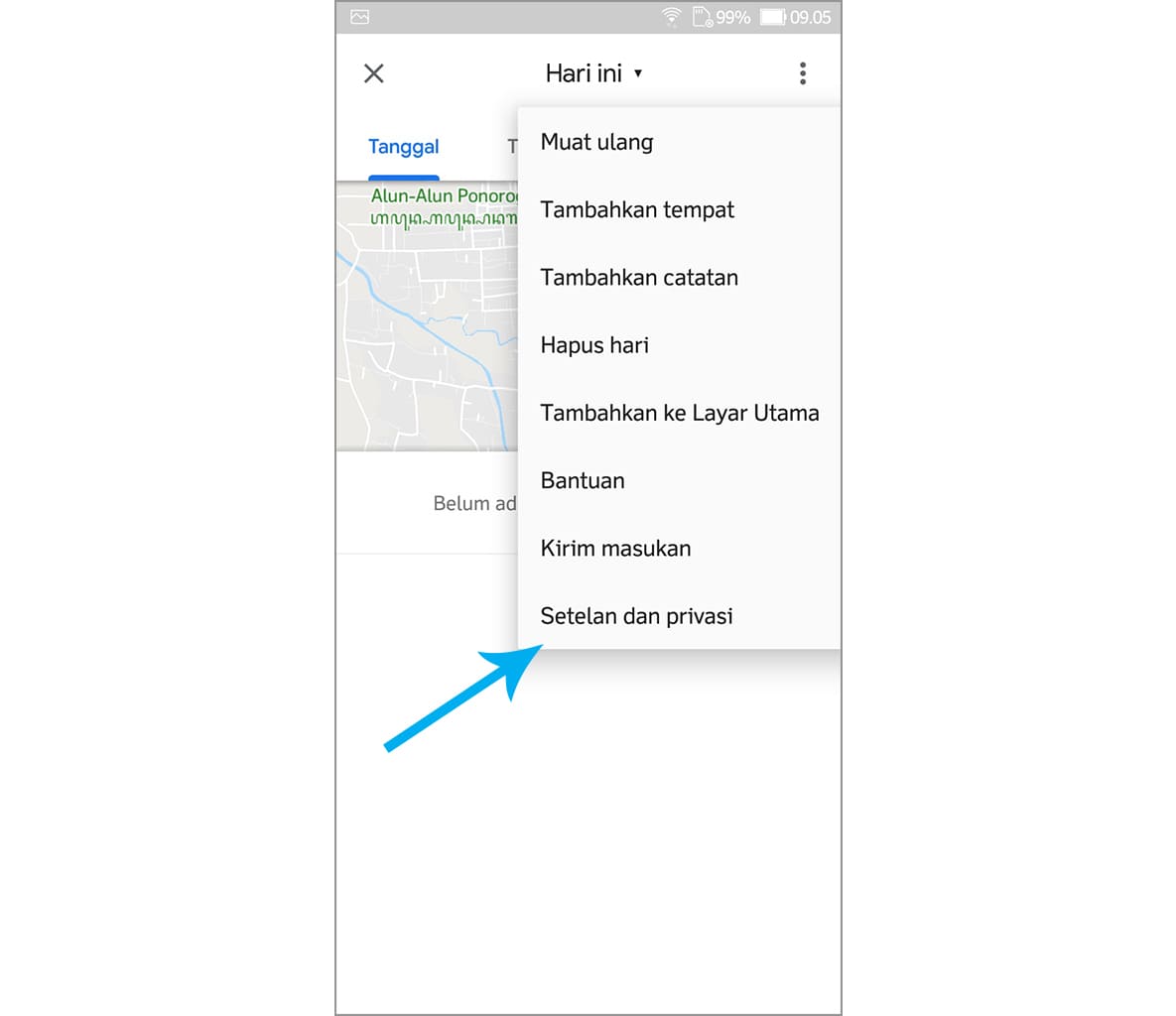 5. Pilih setelan dan privasi.