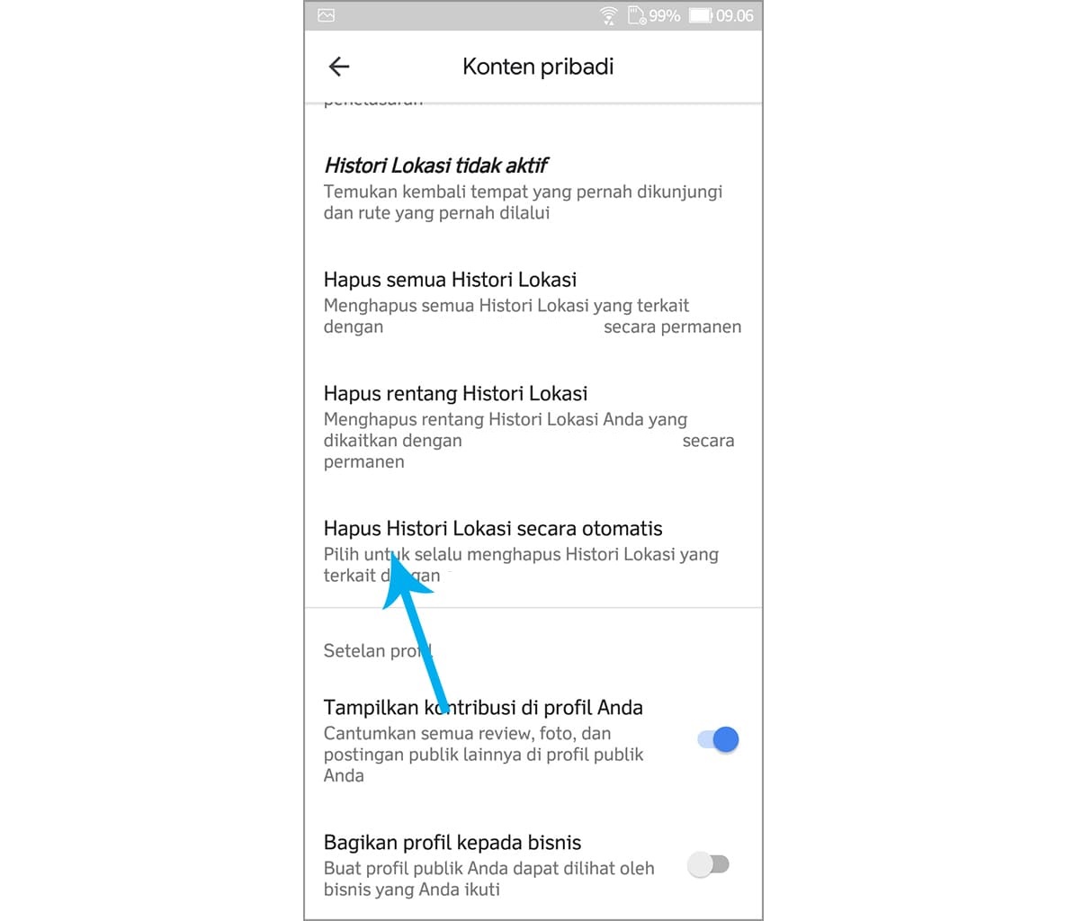 6. Ketuk hapus histori lokasi secara otomatis.