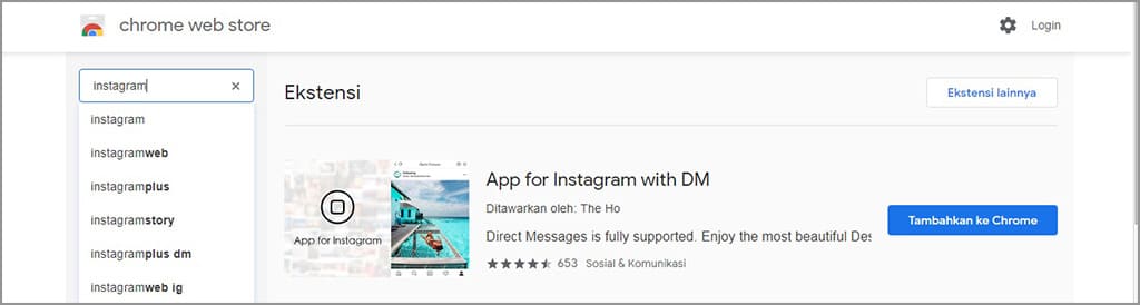 4. Pilih app for Instagram with DM, kemudian tambahkan ke Chrome.