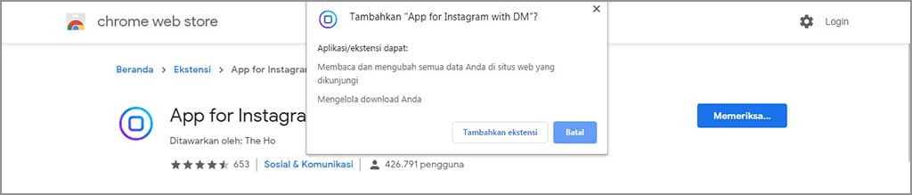 5. Akan muncul pop-up, silakan klik tambahkan ekstensi.