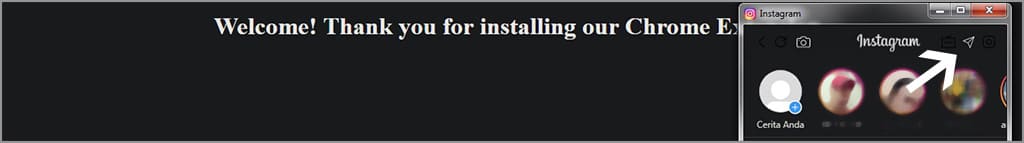 7. Jika pemasangan berhasil, maka ikon app for Instagram with DM akan terletak di pojok kanan atas.