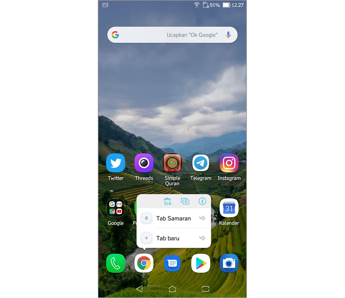 4. Ketuk sembari menahan tab samaran, kemudian pindahkan ke tempat yang Anda inginkan ikon shortcut Chrome incognito mode-nya.