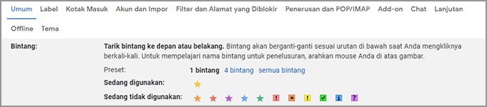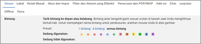 Akan tetapi, sebelum Anda membuat klasifikasi email berdasarkan warna ikon bintang, pastinya Anda harus melakukan pengaturan terlebih dahulu di menu setelan Gmail agar warna bintang bisa berubah.