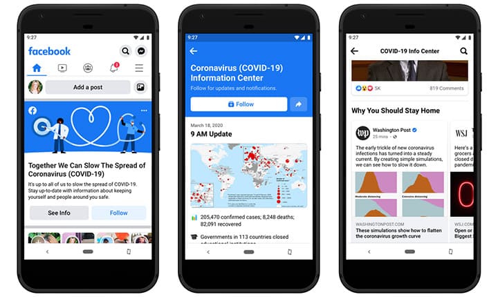 Pusat informasi Corona Facebook bisa ditemukan oleh para pengguna di bagian paling atas dari news feed. Semua berita yang tampil di news feed akan bertahan selama 24 jam, dan sudah tersedia untuk para pengguna yang berada di AS, Inggris, Jerman, Italia, Perancis, dan Spanyol.