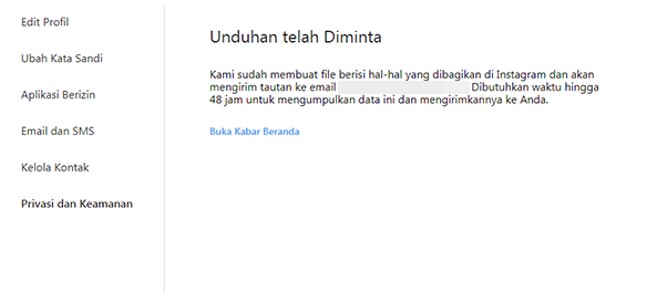 5. Sesuai yang disampaikan oleh Instagram, di mana pengunduhan data membutuhkan waktu hingga 48 jam, maka Anda pun harus sering-sering mengecek email.