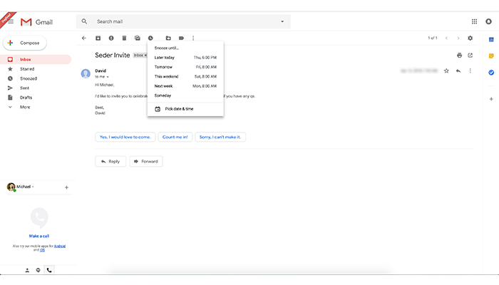Dan berikut ini tampilan fitur snoozed, tepatnya ketika kita ingin menggunakan fitur tersebut.