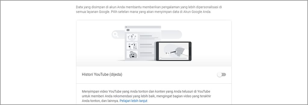 Setelah itu, silakan Anda geser tombol aktif yang berada di posisi kanan menjadi di posisi kiri atau mematikannya. Dengan menerapkan cara tersebut, maka tontonan dan penelusuran yang Anda lakukan tidak akan pernah disimpan oleh pihak Google.