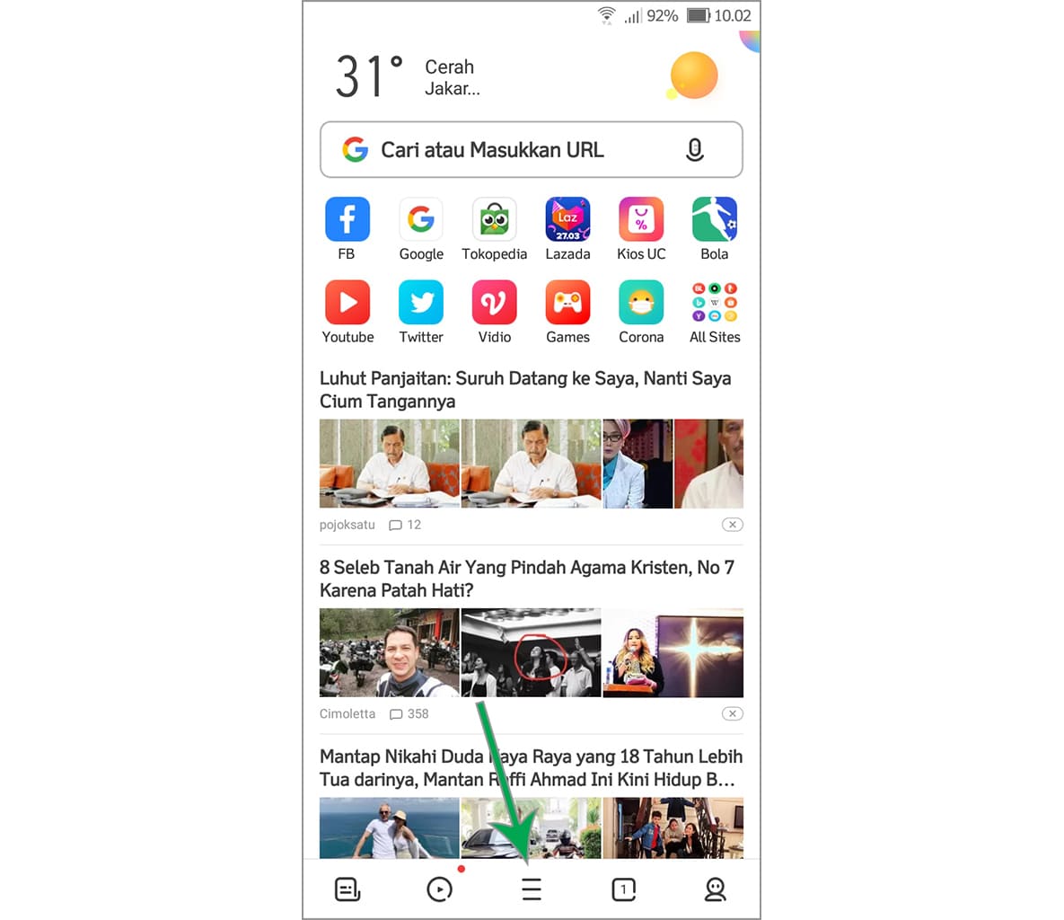 1. Silakan buka UC Browser yang terpasang di smartphone Anda.