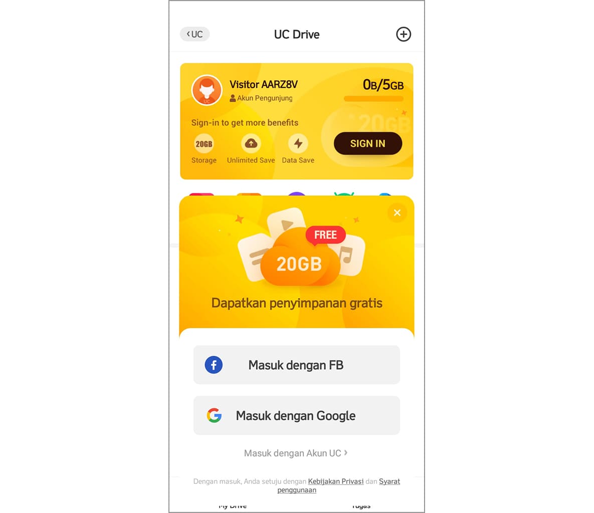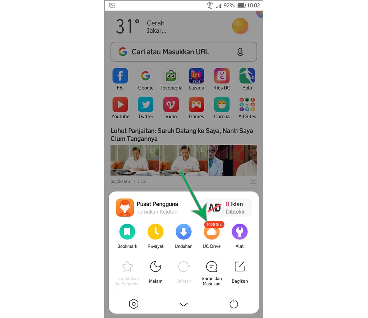 Jika Anda seorang pengguna UC Browser, maka sudah seharusnya Anda memanfaatkan fitur baru yang ditawarkan oleh pihak UC ini. Apabila Anda belum mengetahui bagaimana caranya mendapatkan ruang penyimpanan sebesar 20GB di UC Drive, Anda bisa mengikuti langkah-langkahnya di bawah ini.