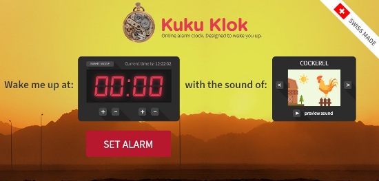 Kuku Klok adalah jam alarm online gratis yang menarik dengan tata letak sederhana, dan layar kuning cerah. Ada pula mode siang dan malam di layar Kuku Klok sehingga anda bisa beralih ke pemandangan malam dan bintang-bintang.