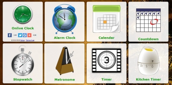 Situs Onlive Clock menyediakan satu set aplikasi web gratis termasuk jam alarm, kalender, stopwatch, penghitung waktu, hitung mundur, metronome, dan lainnya.