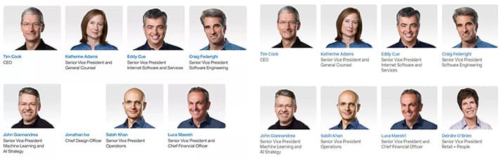 Per 26 November 2019 kemarin, Jony Ive resmi hengkang dari Apple. Penampakan foto Ive di jajaran eksekutif hanya terlihat latar belakang putih saja. Itu penampakan jajaran eksekutif Apple pada 26 November. Adapun untuk saat ini (30/11/19), nama dan latar belakang dari Ive sudah resmi menghilang.