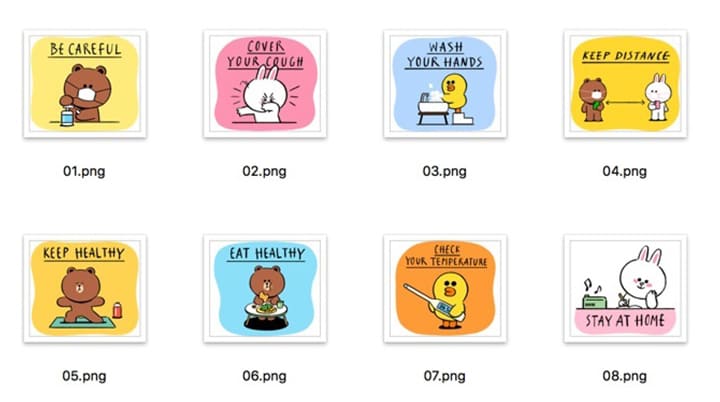 Set stiker siaga COVID-19 diluncurkan pada akhir Maret lalu. Namun, pihak perusahaan kembali meluncurkan stiker baru terkait COVID-19 di platformnya. Kali ini, stiker yang diluncurkan oleh pihak perusahaan adalah stiker dari karakter Brown & Friends.