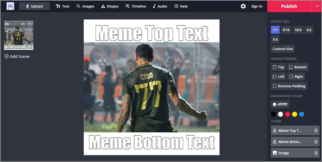 Untuk membuat meme melalui Kapwing, Anda hanya perlu memilih template yang ingin digunakan. Setelah itu klik make it, kemudian unggah foto atau gambar Anda. Langkah selanjutnya setelah foto atau gambar berhasil diunggah adalah melakukan pengaturan. Silakan atur sedemikian rupa desain meme Anda itu.
