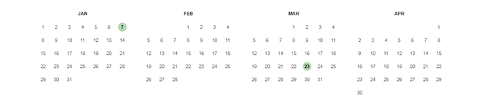 3. Silakan klik pada garis hitam pertama atau garis hitam berikutnya, maka di bawah garis-garis tersebut akan muncul deretan tanggal dan bulan yang bisa Anda pilih.