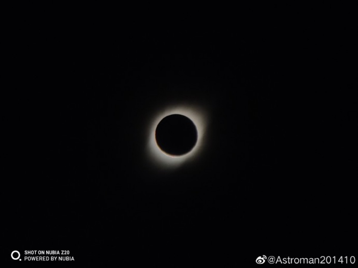 Dr. Deng Licai dari akademi ilmu pengetahuan china mengambil beberapa foto menggunakan smartphone tersebut pada saat event solaR eclipse di chili.
