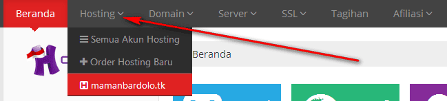 1. Pada menu dashboard cPanel Idhostinger, buka hosting > nama hosting anda.