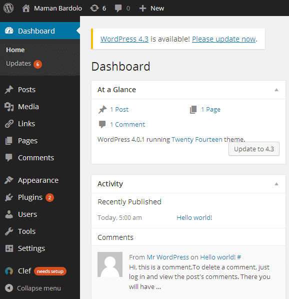 Dalam contoh ini saya menggunakan alamat http://mamanbardolo.tk/wp-admin seperti gambar dibawah, WordPress sudah bisa di akses dan siap digunakan.