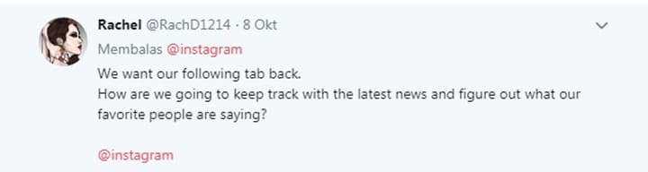 Serangan atau protes yang dilakukan oleh sebagian pengguna ini memang lebih banyak dilakukan di akun Twitter resmi Instagram. Adapun untuk di akun Instagram sendiri, protes dari para pengguna yang meminta fitur following tab kembali tidak begitu nampak.