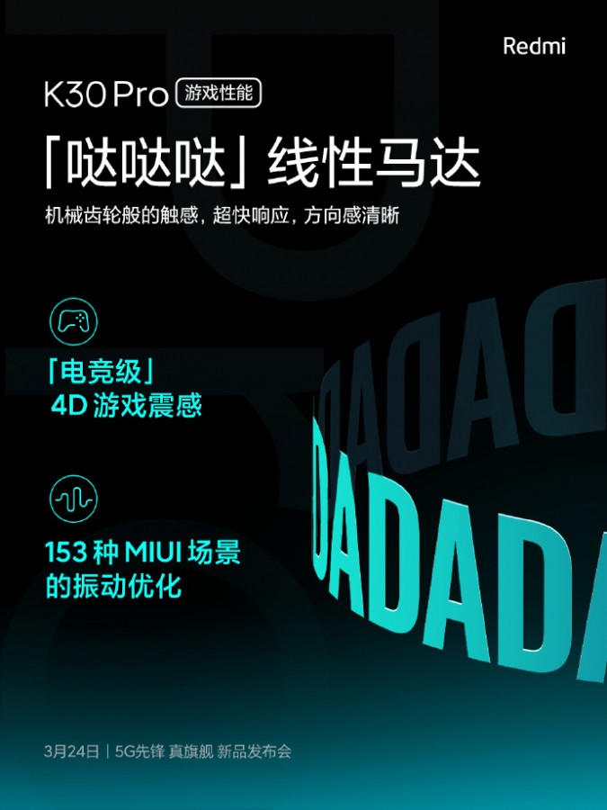 K30 Pro akan menggunakan linear vibration motor yang diklaim akan mampu memberikan tactile feedback/getaran yang lebih baik dengan respon yang lebih cepat.