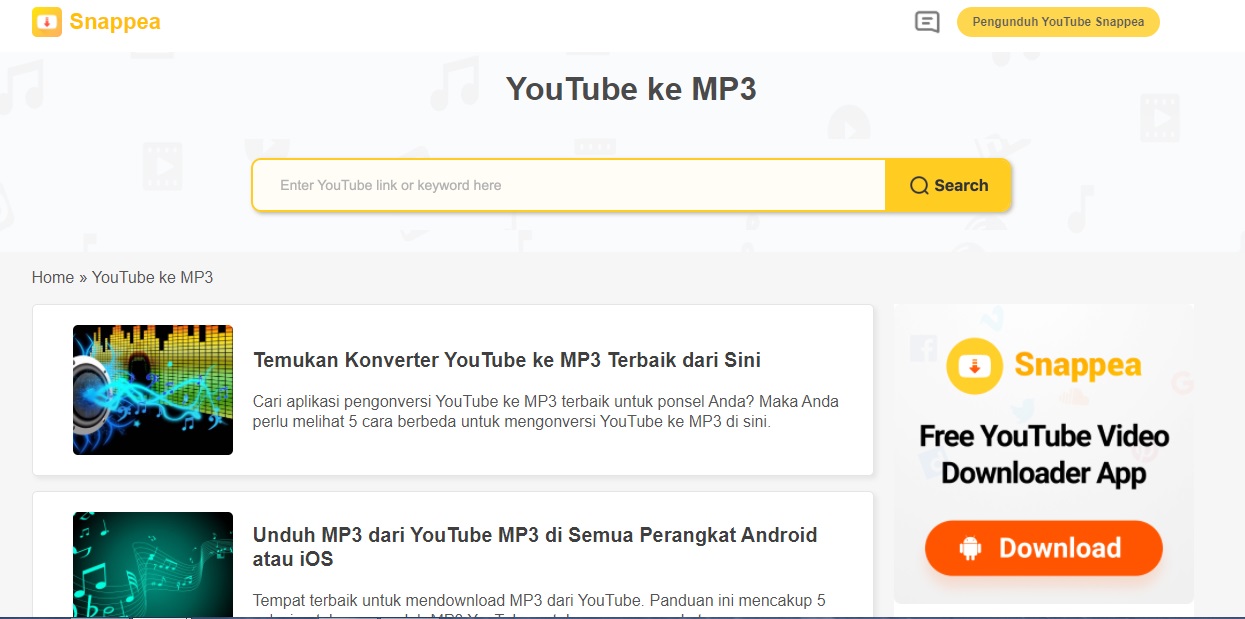 Anda dapat melihat tutorial atau cara lebih lengkapnya dan link untuk unduh video YouTube ke MP3.Pertama-tama kunjungi web Snappea dan instal aplikasinya.