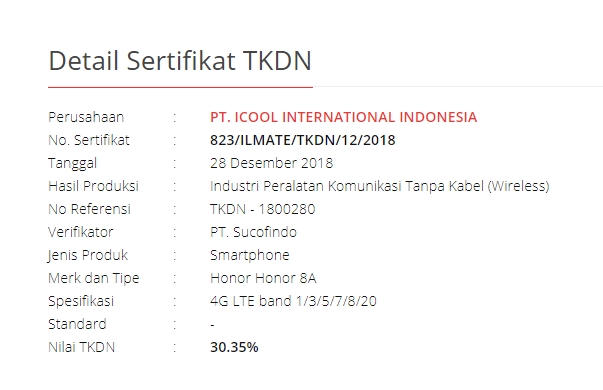 Dari laman resmi TKDN disebutkan bahwa smartphone yang dibawa oleh PT Icool International Indonesia ini memiliki nilai kandungan dalam negeri sebesar 30,35%.